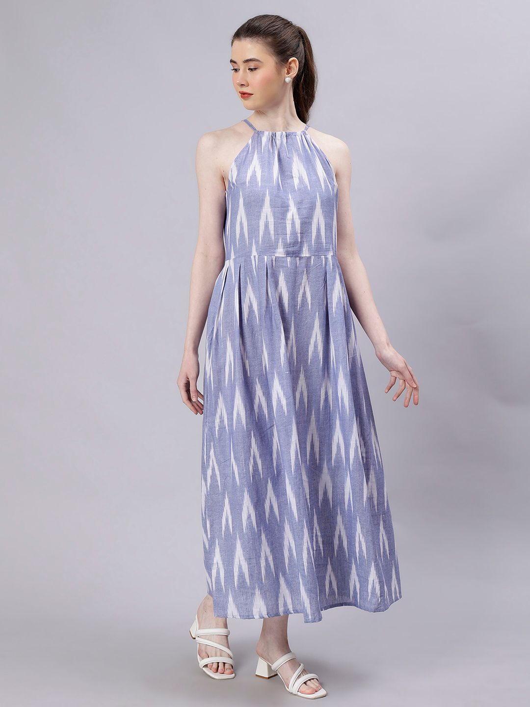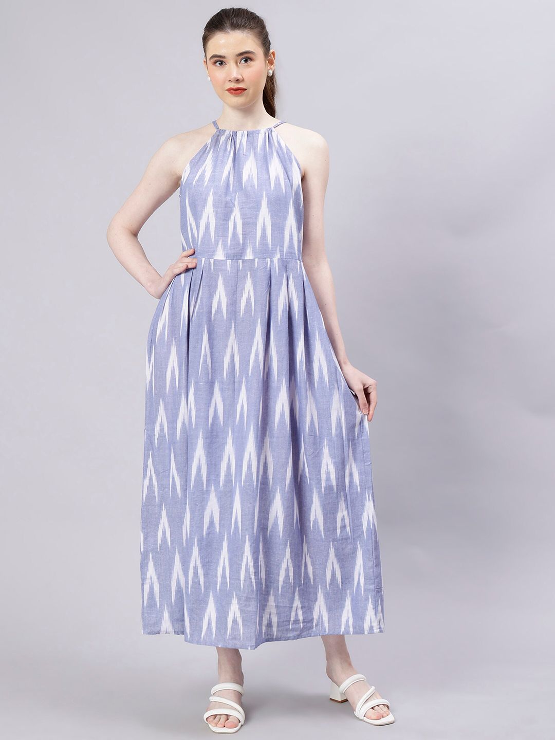 ENTELLUS Ethnic Motifs Printed Halter Neck Cotton Maxi Dress