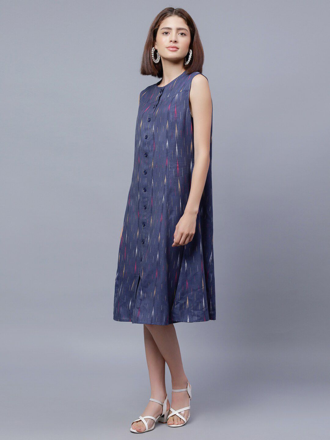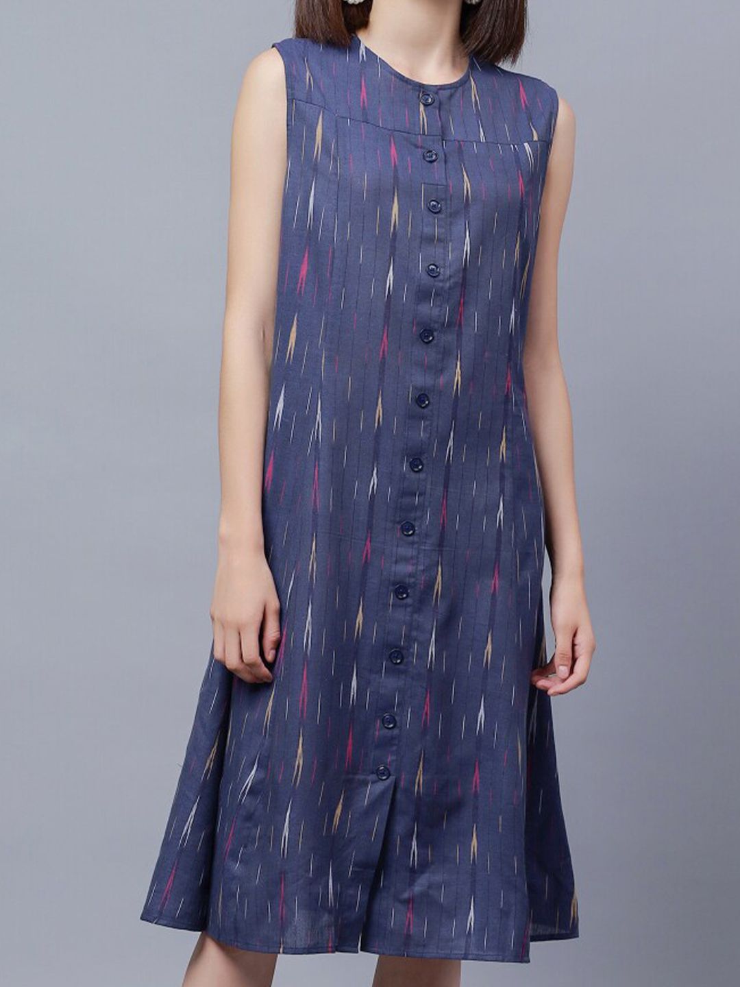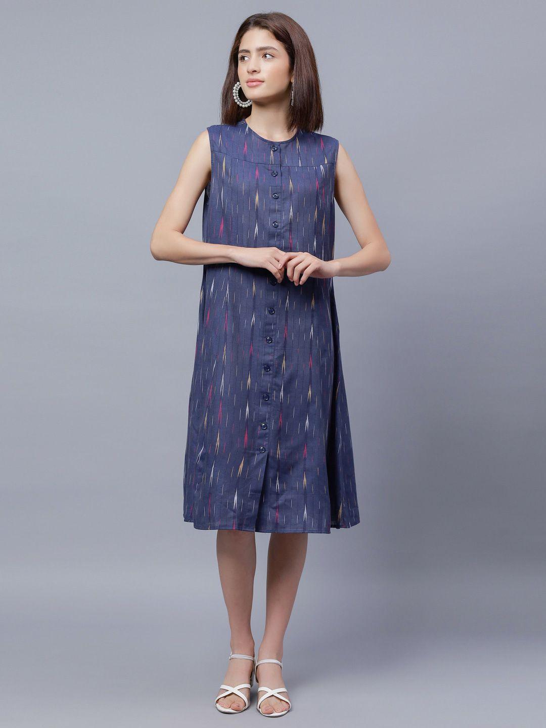 ENTELLUS Ethnic Motifs Printed Sleeveless Cotton A-Line Dress