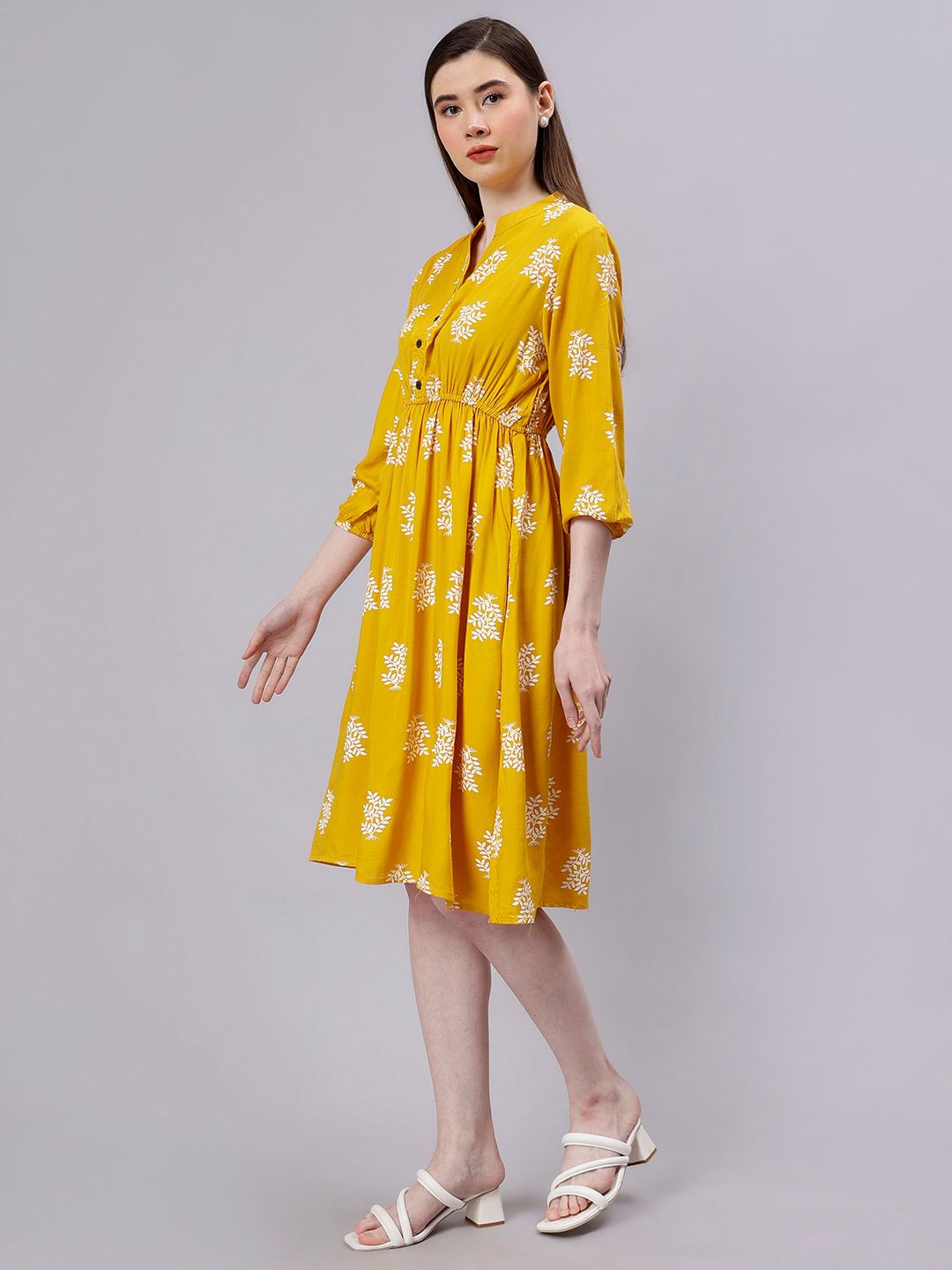 ENTELLUS Floral Print Cotton Fit & Flare Dress