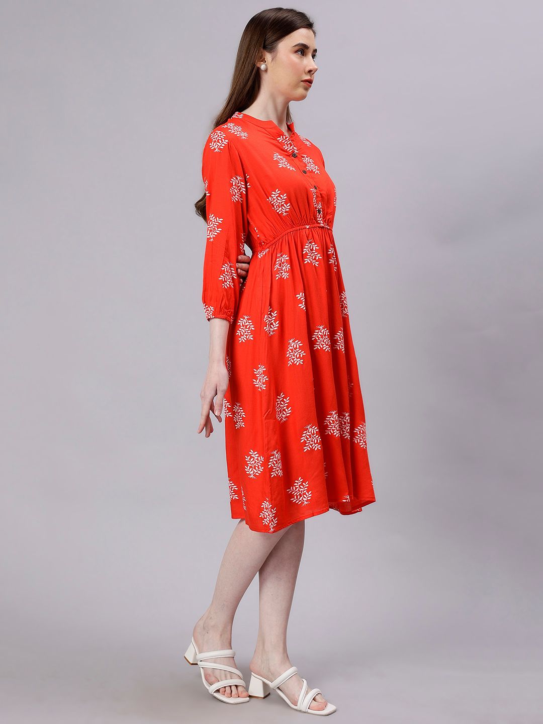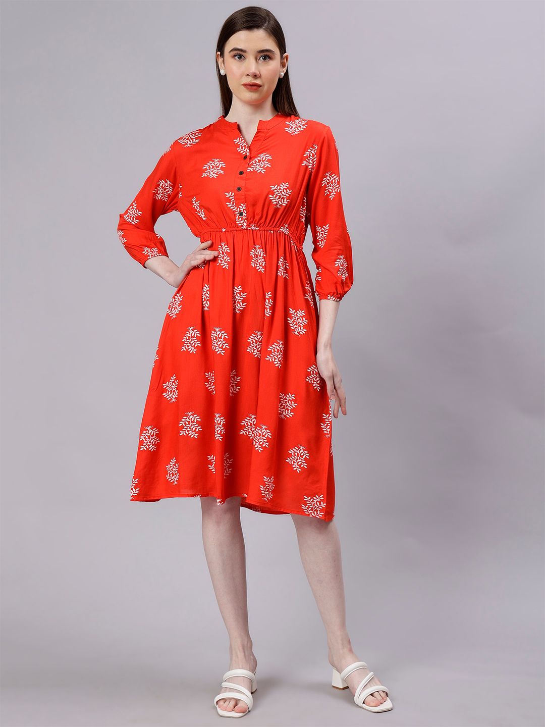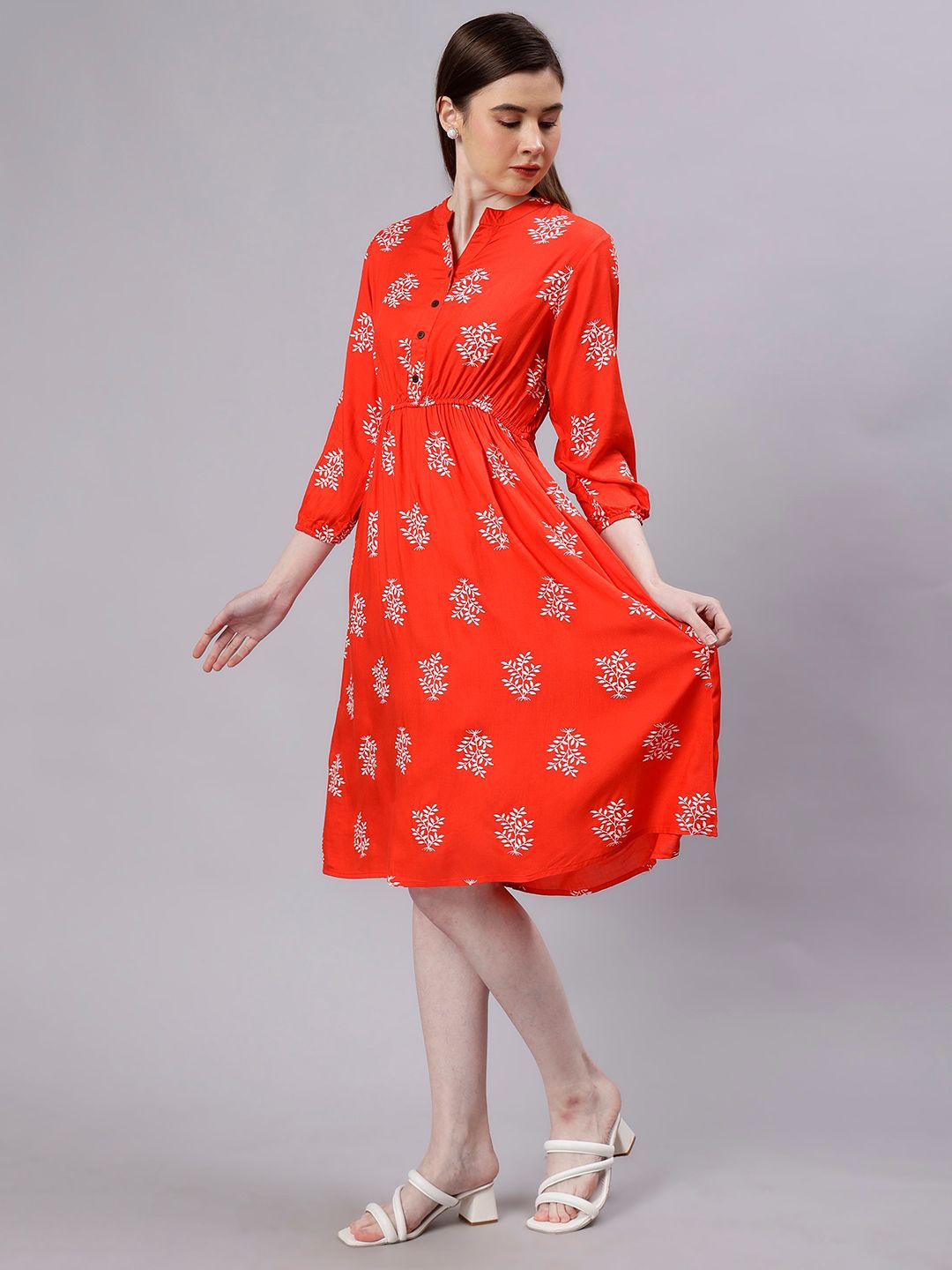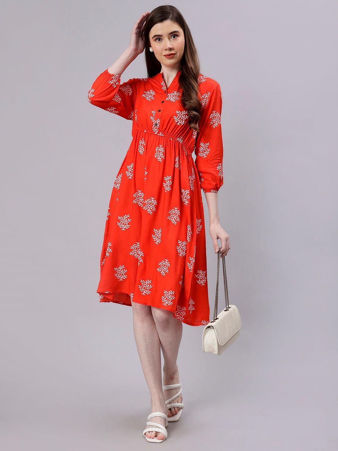 ENTELLUS Floral Print Cotton Fit & Flare Dress