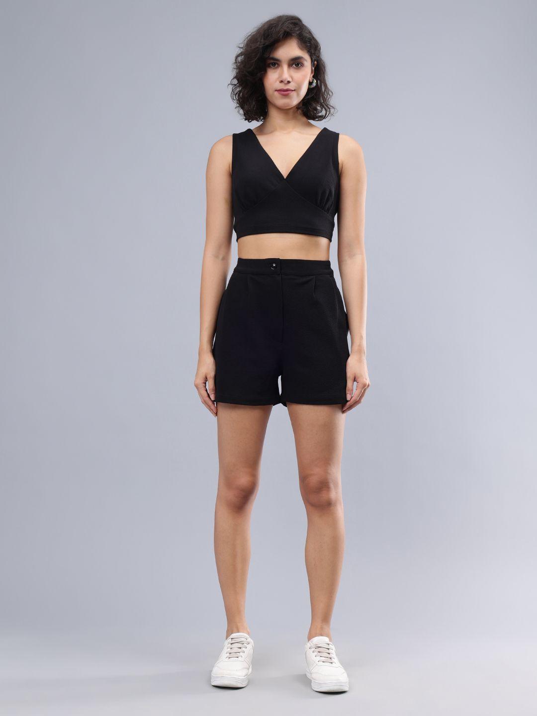 ENTELLUS Printed Lapel Collar Pure Cotton Crop Top With Trouser