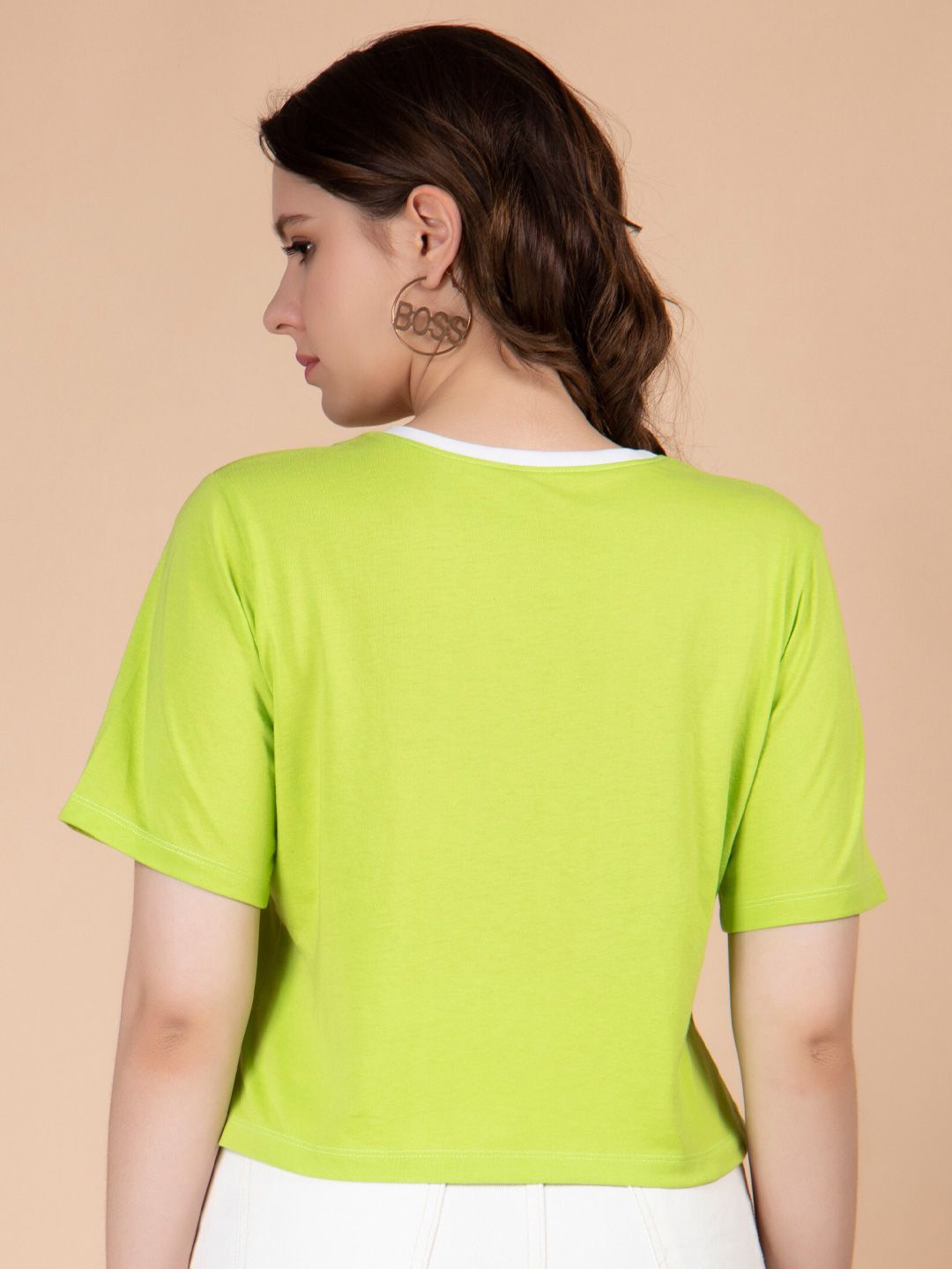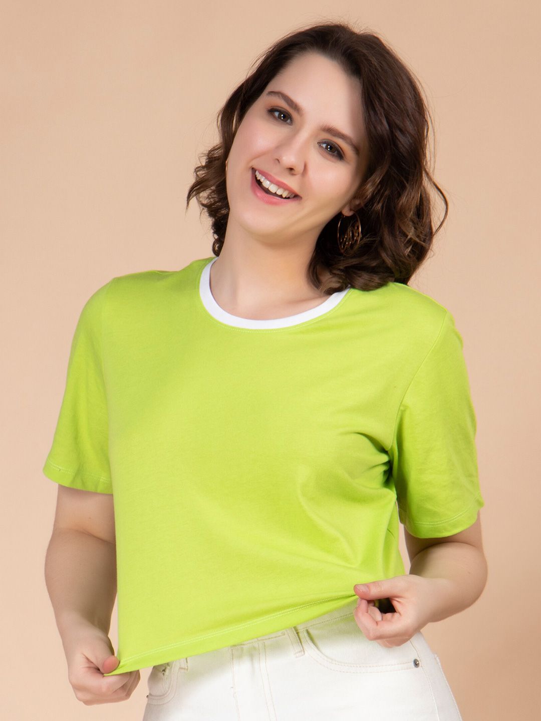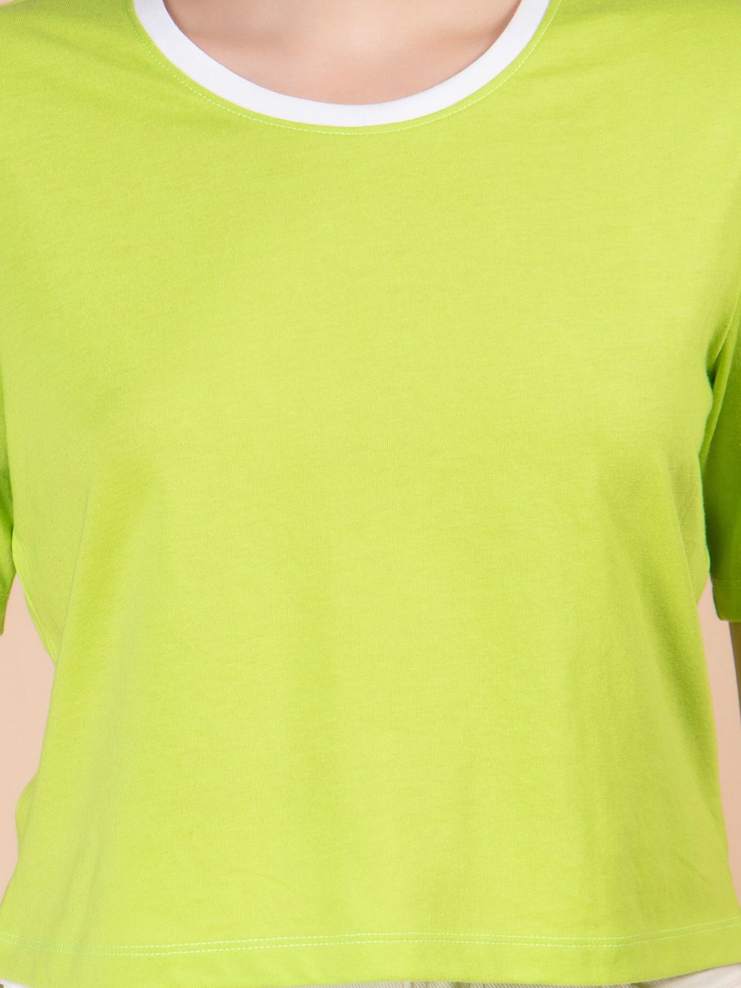 ENTELLUS Round Neck Slim Fit Cotton Casual Crop T-shirt