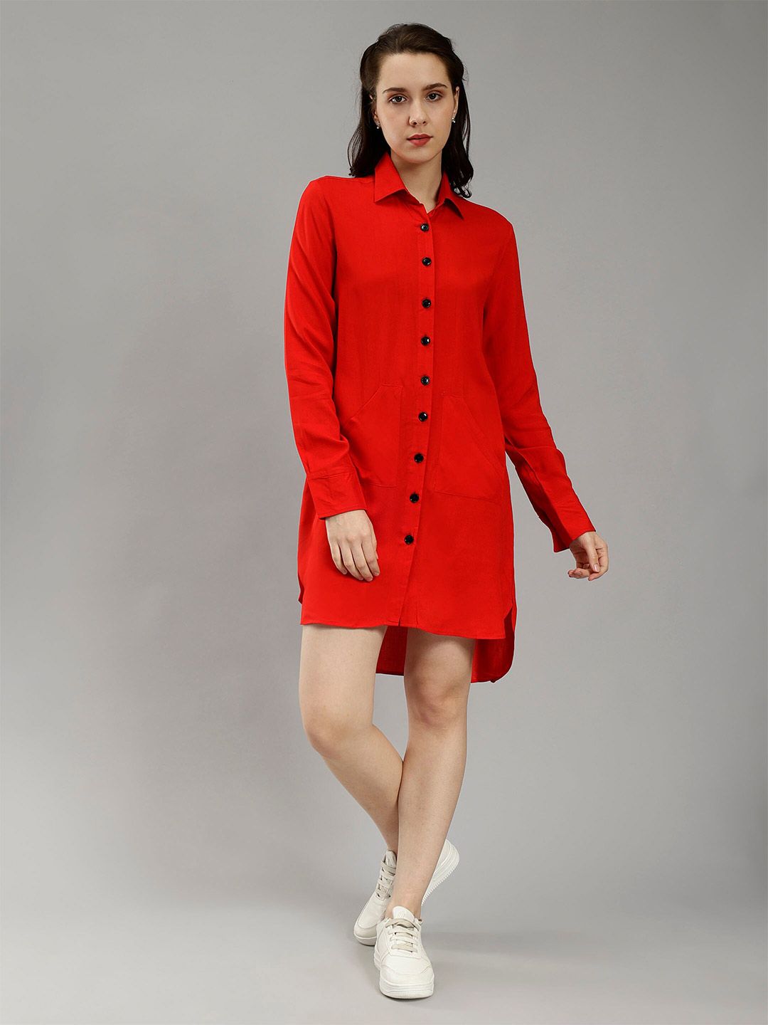 ENTELLUS Spread Collar Cotton Comfort Longline Slim Fit Casual Shirt