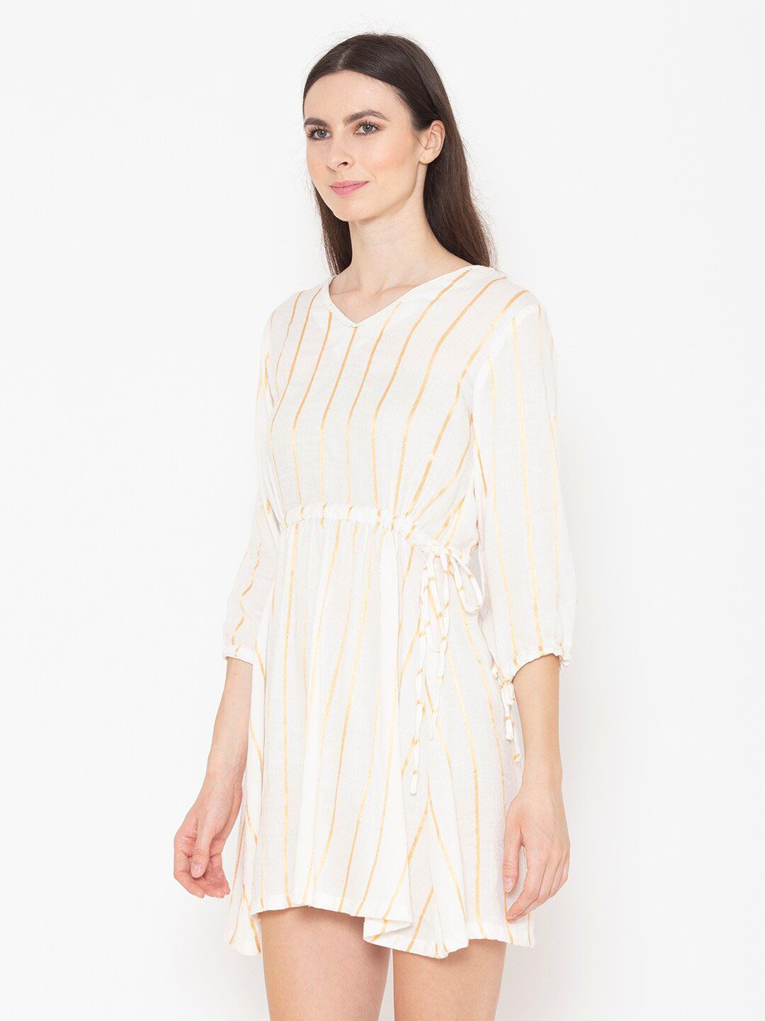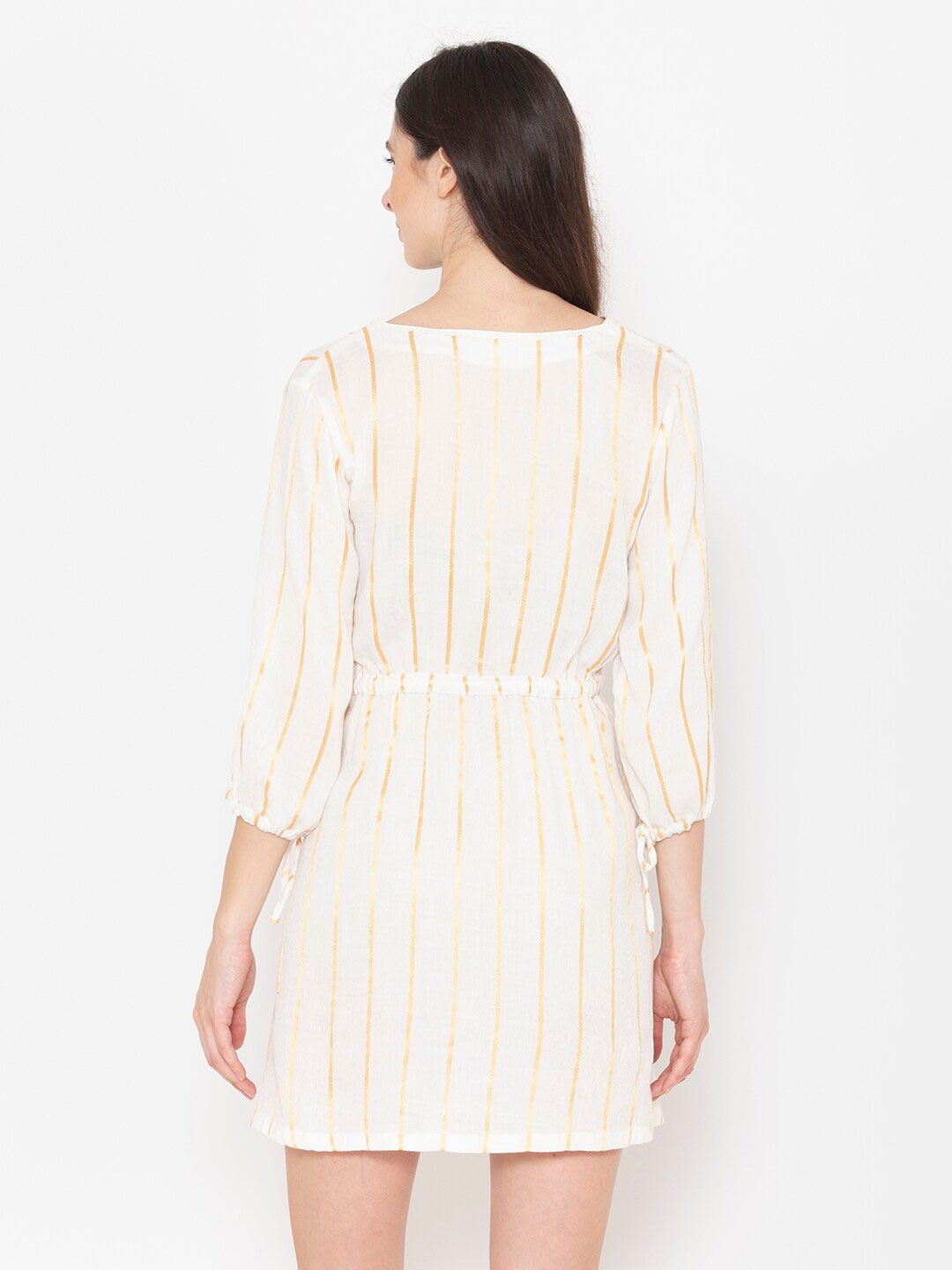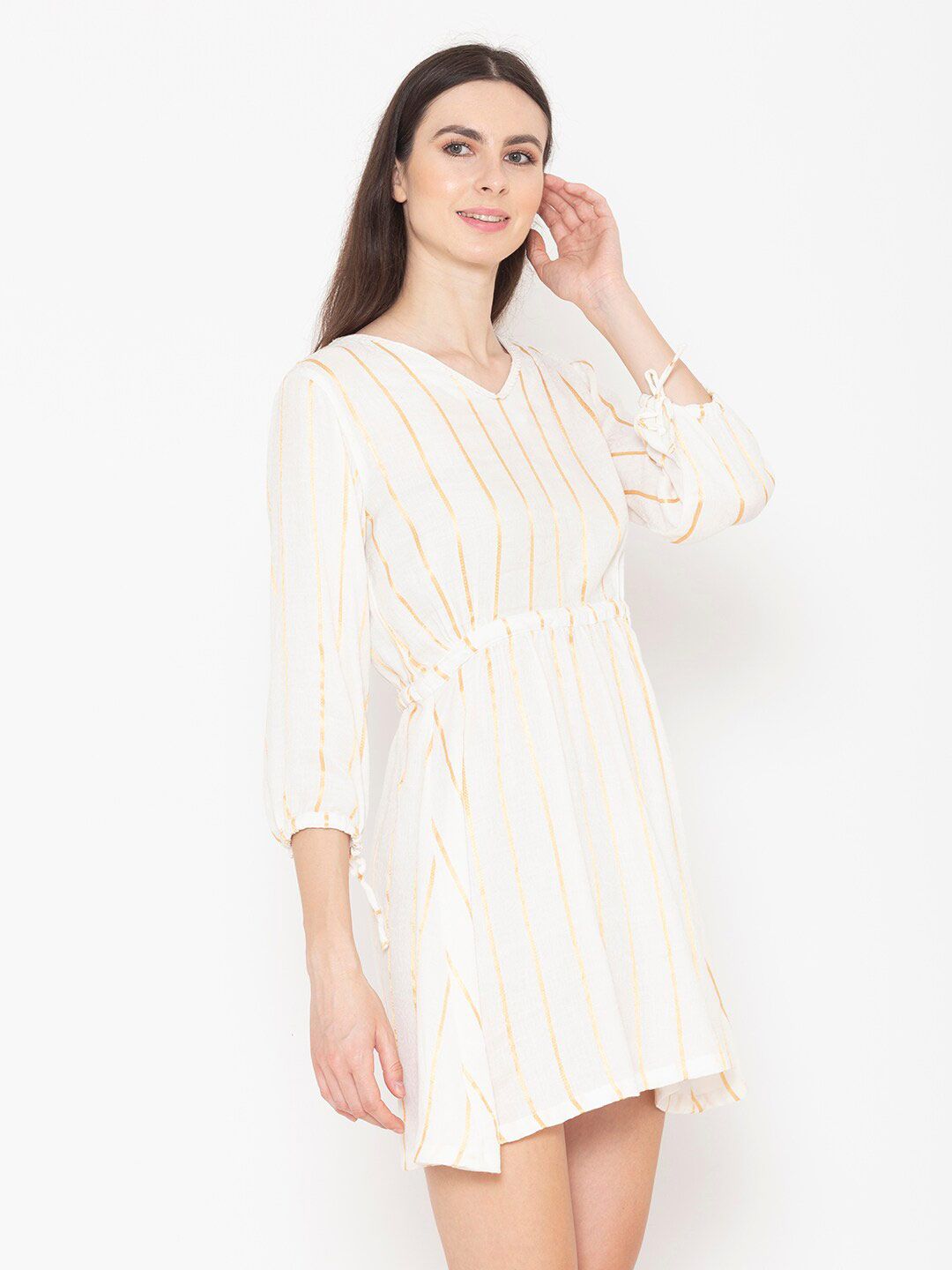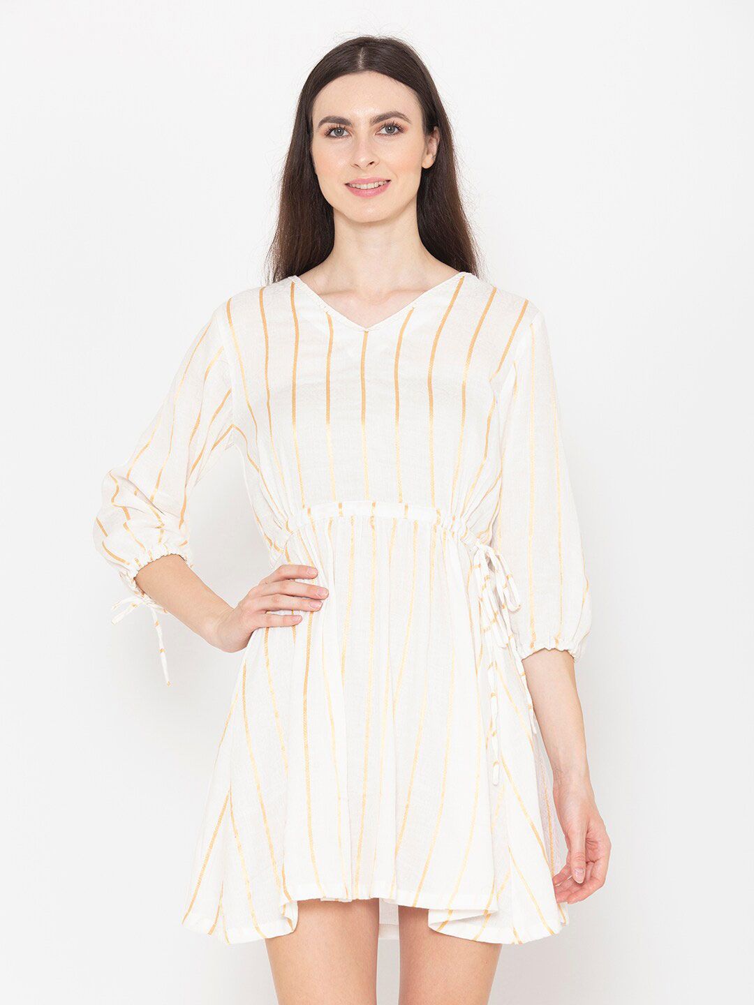 ENTELLUS Striped Puff Sleeve Fit & Flare Mini Dress