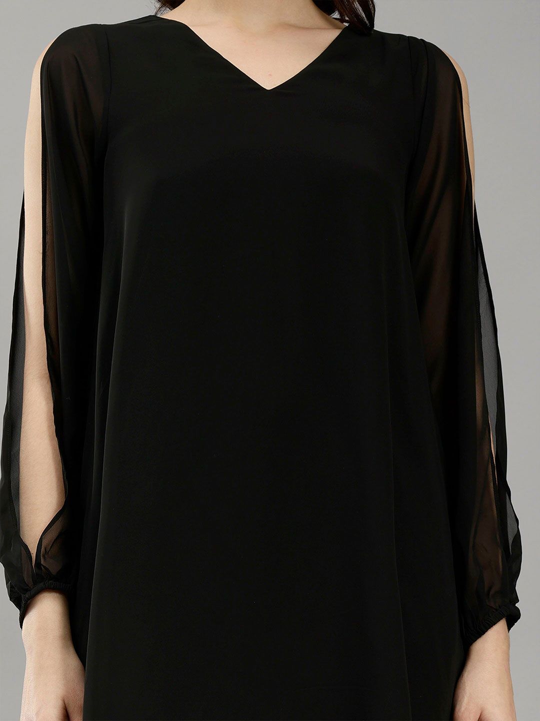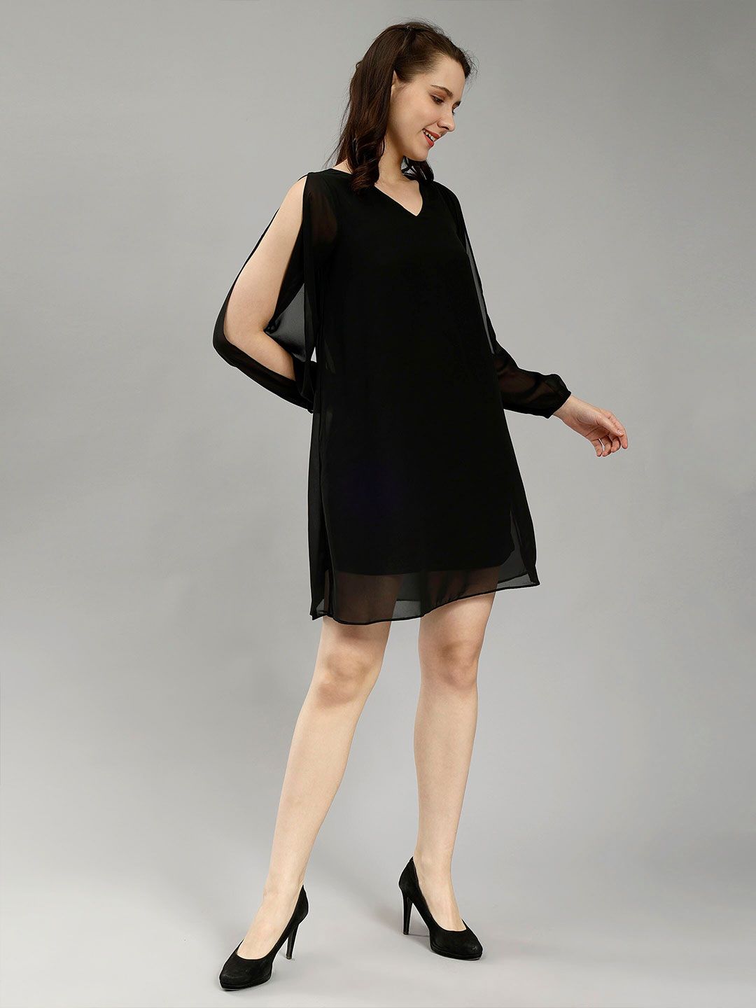 ENTELLUS V-Neck Slit Sleeves A-Line Dress