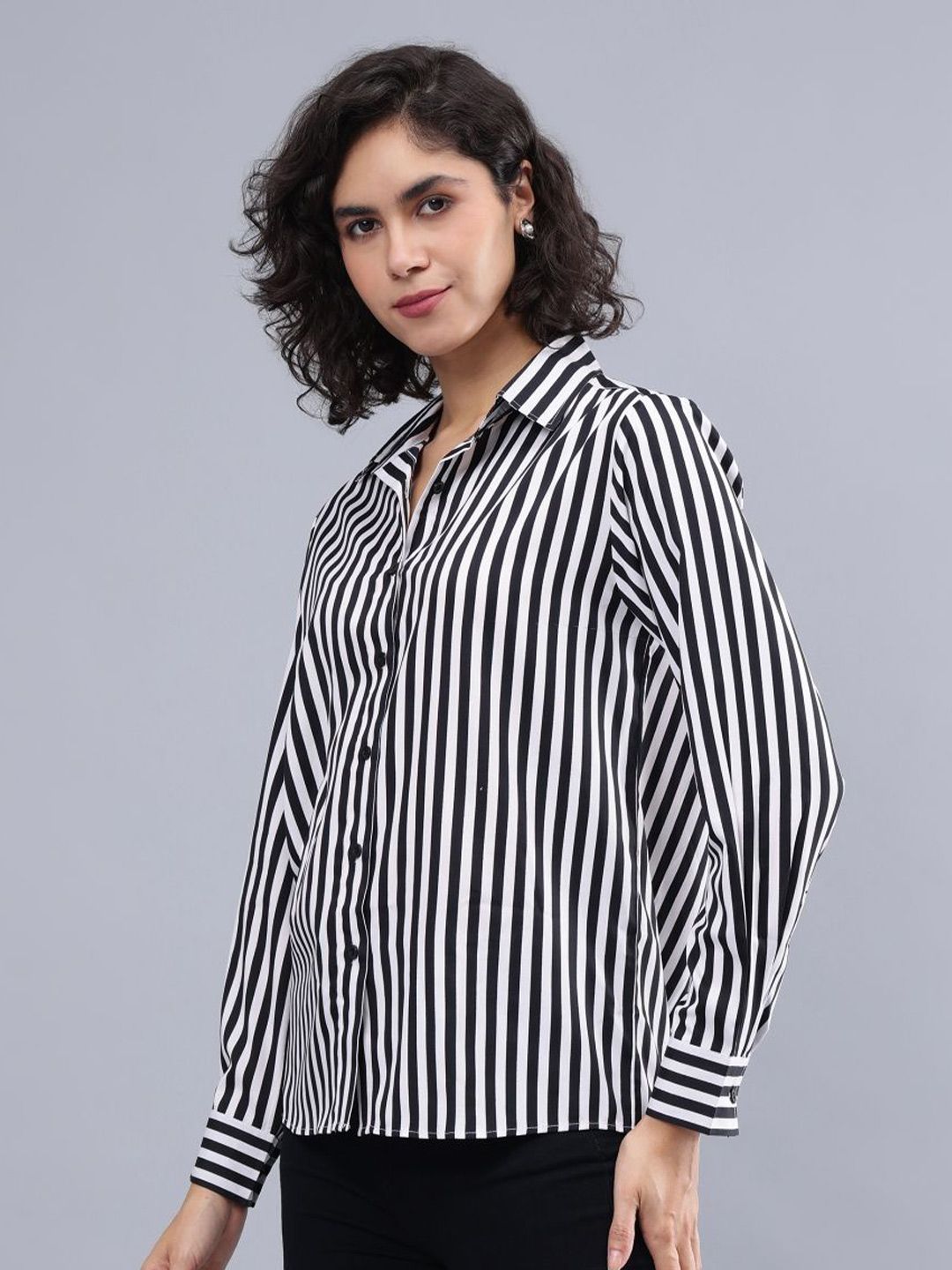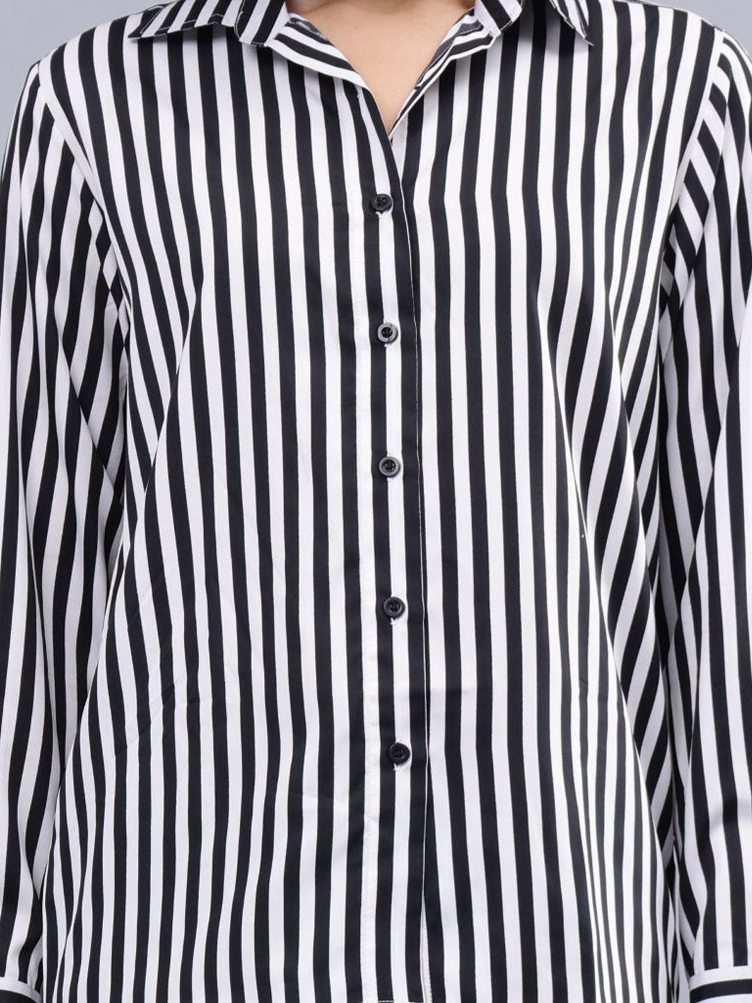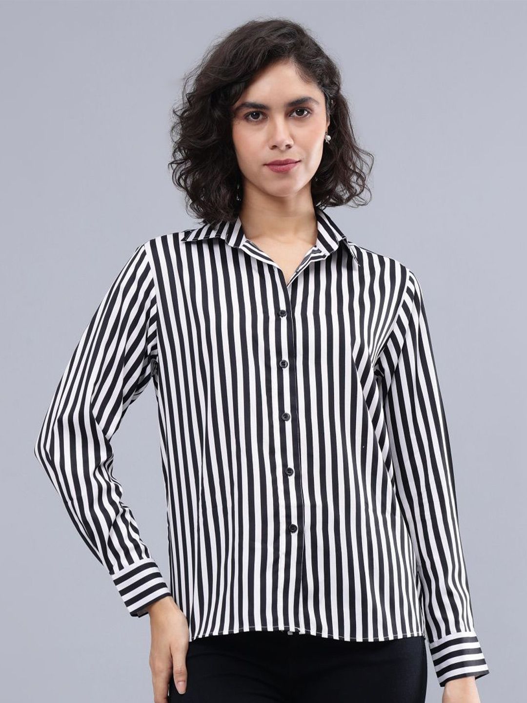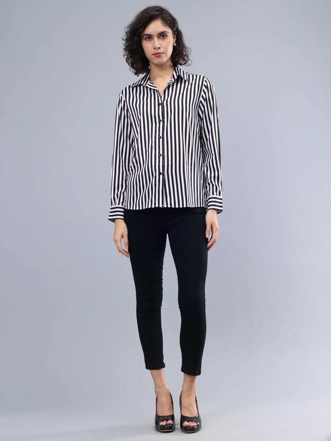 ENTELLUS Women Classic Slim Fit Opaque Striped Casual Shirt