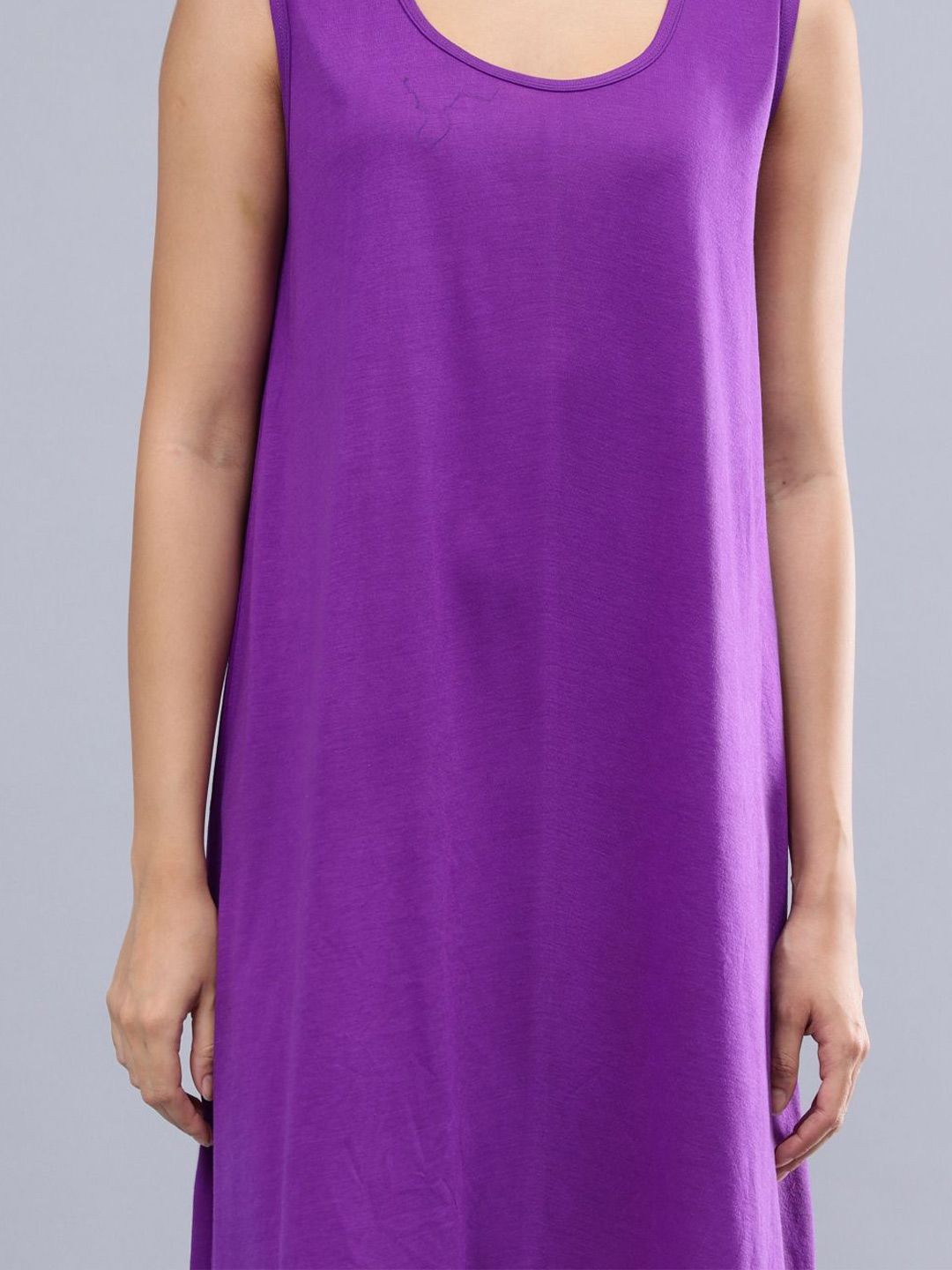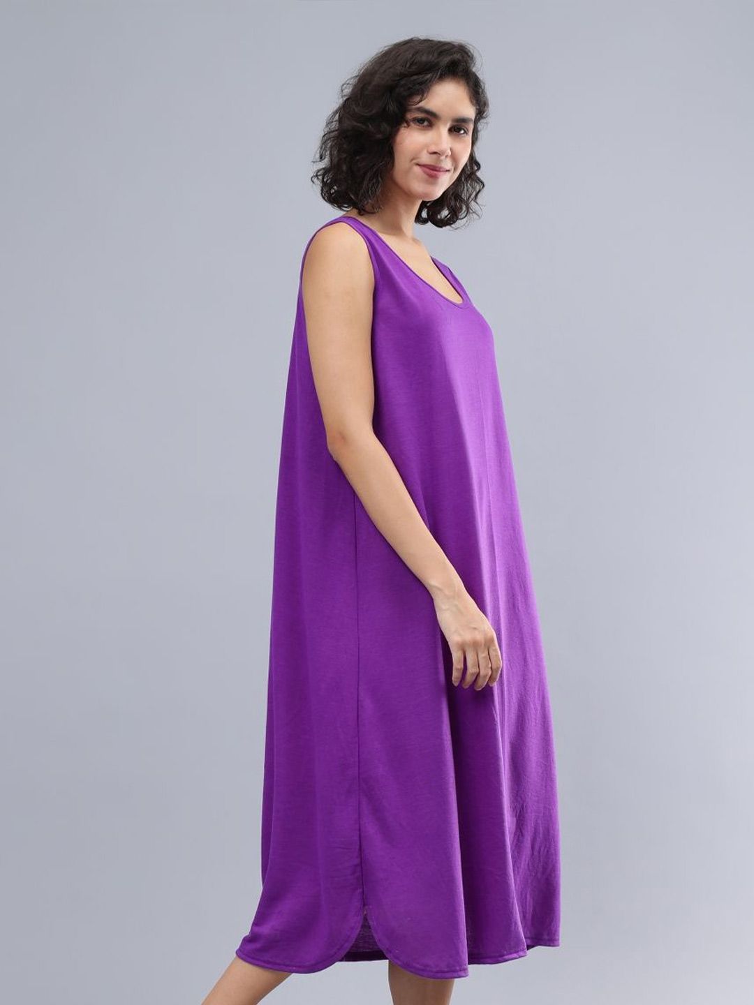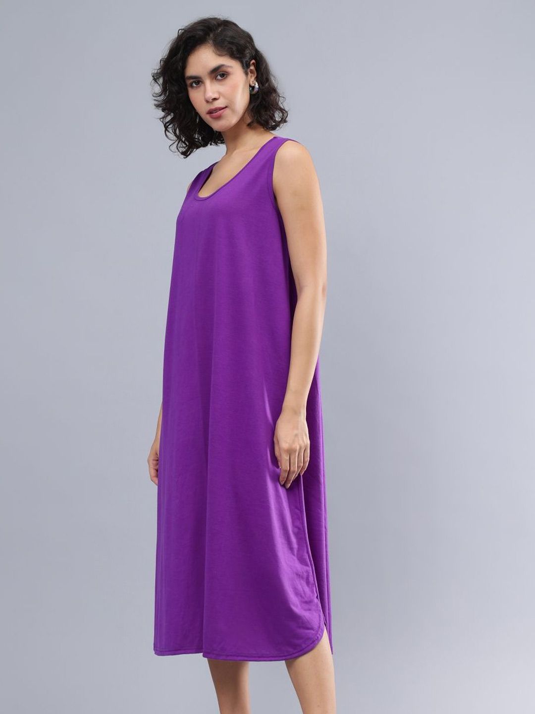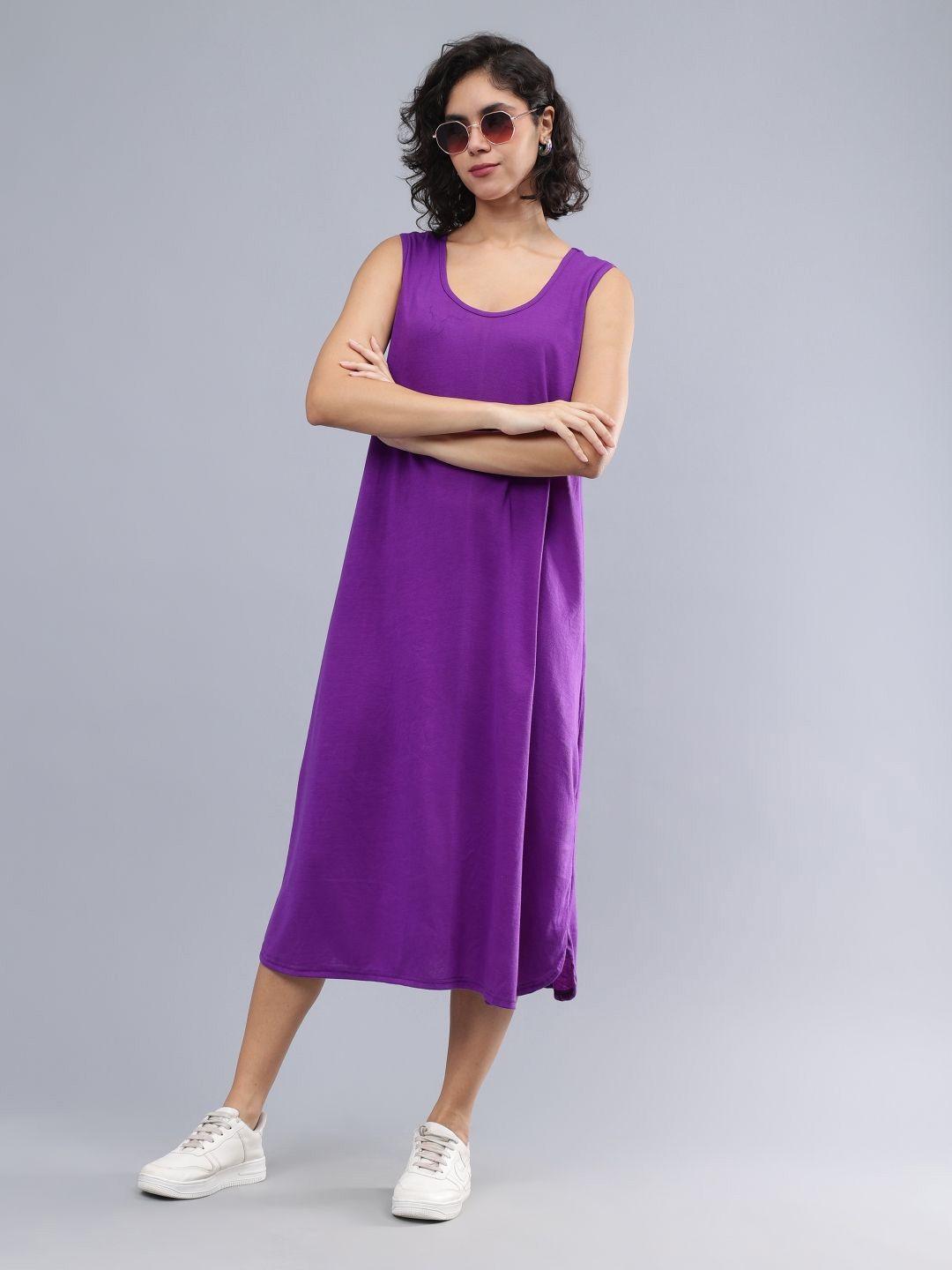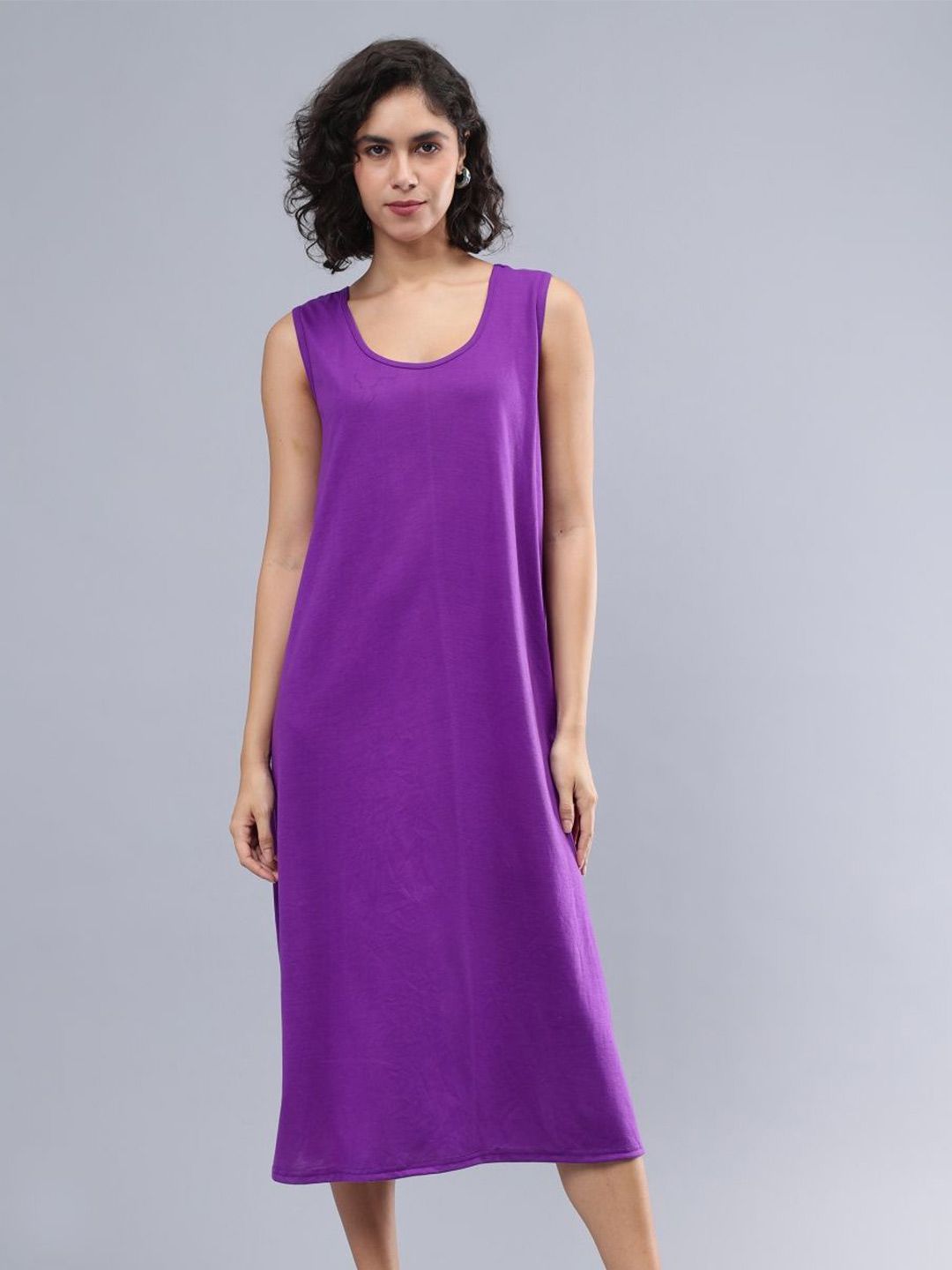 ENTELLUS Women Cotton Round Neck Midi Shift Dress