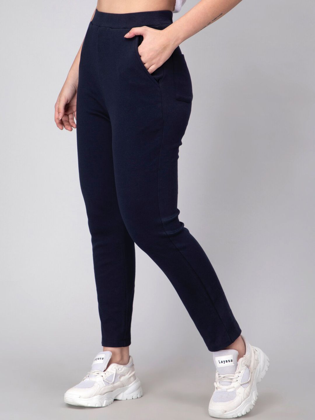 ENTELLUS Women Mid-Rise Cotton Slim-Fit Track Pants