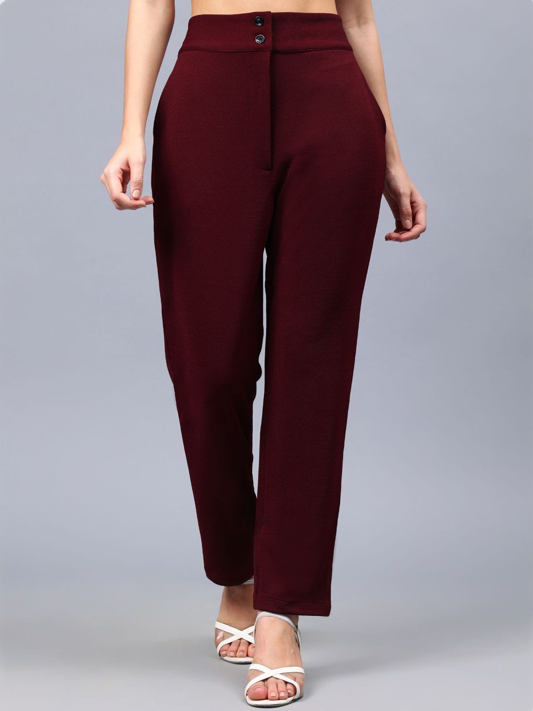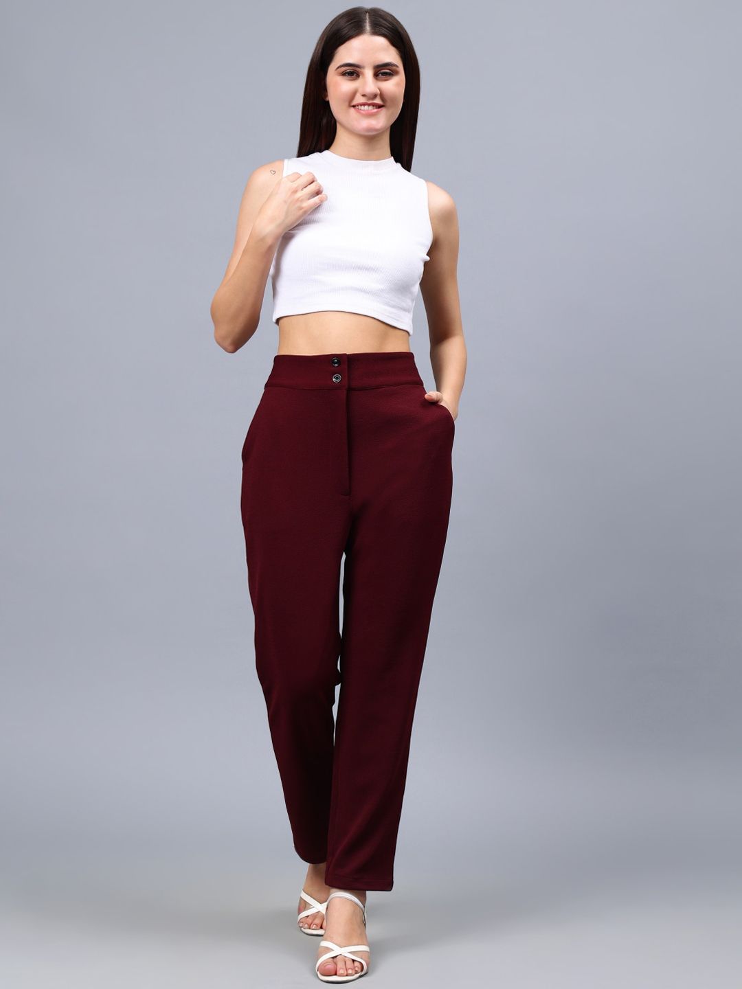 ENTELLUS Women Smart Straight Fit High-Rise Cigarette Trousers