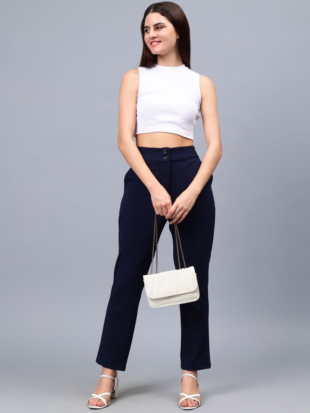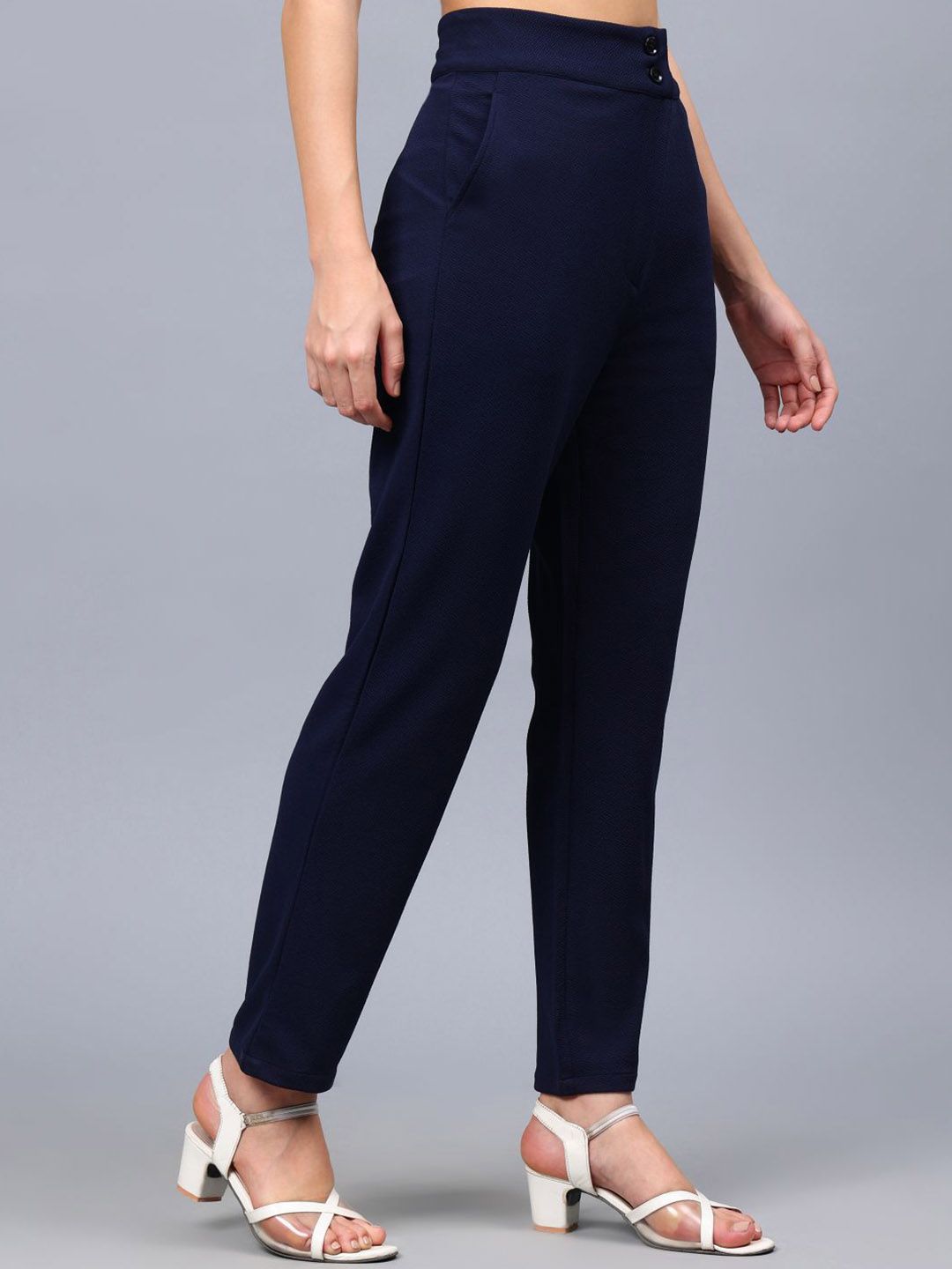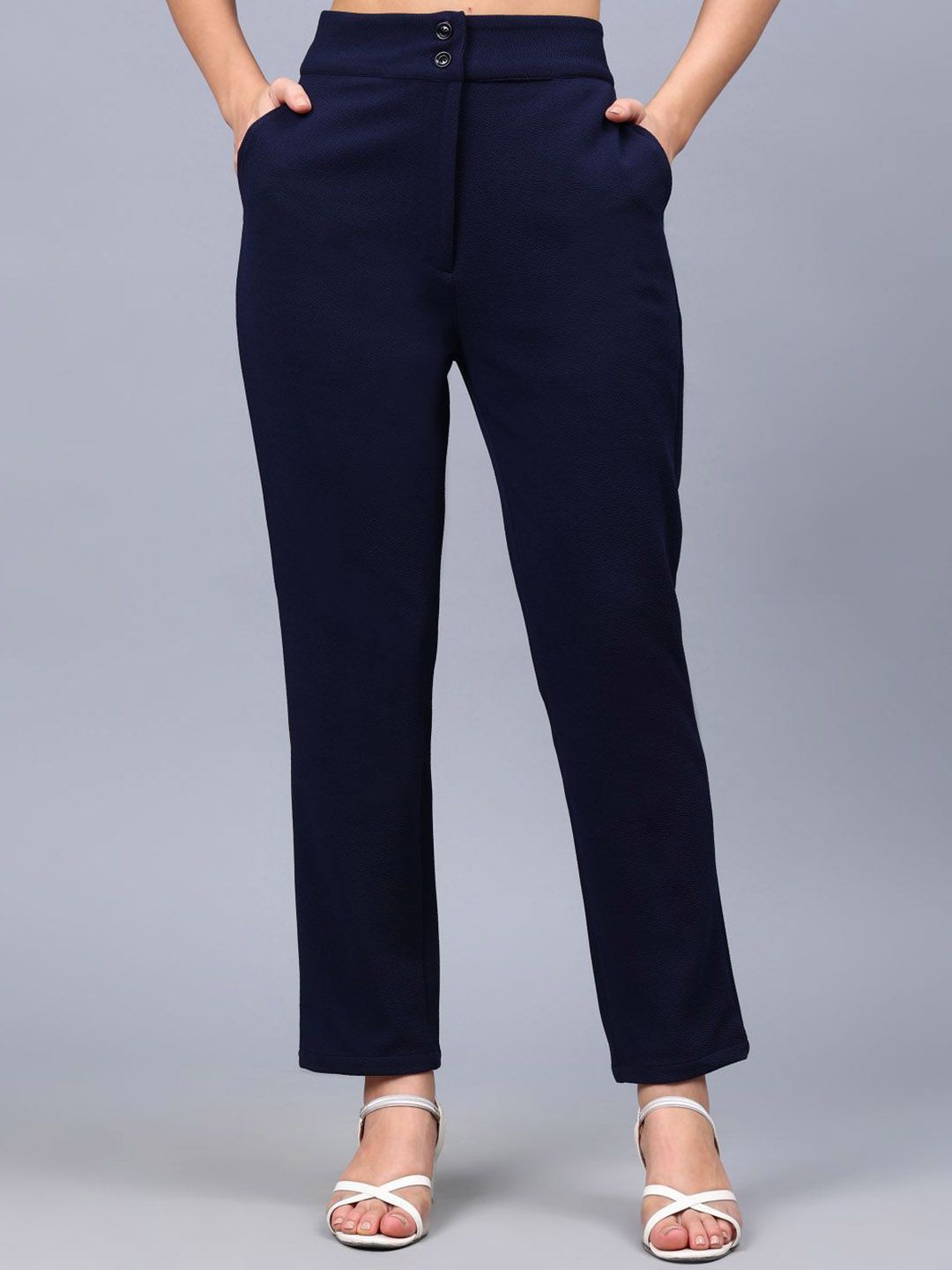 ENTELLUS Women Smart Straight Fit High-Rise Flat-Front Trousers